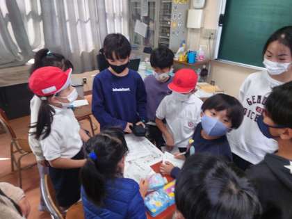 11月18日の全校オリエンテーリングに向けて、たてわり班ごとに分かれて、話し合いを行いました。