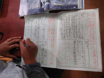 子どもたちは、物語を内容を深く読み取ったり、考えたことをしっかりノートに書いたりして、一生懸命学習していました。