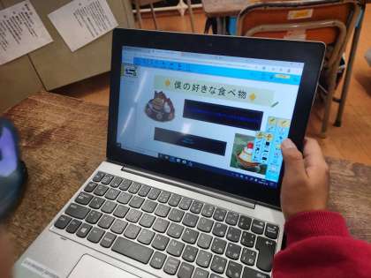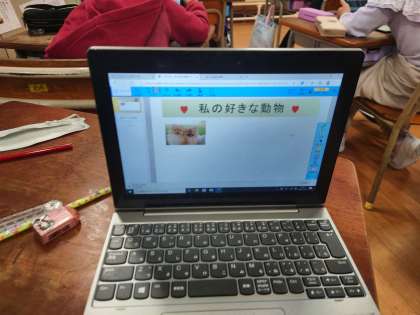 1人1台PCの「発表ノート」の機能を使って、「私の好きな○○」について、文や写真を使ってまとめていきました。