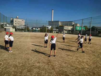 体育の時間は、グループに分かれて大なわとびを練習しました。