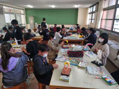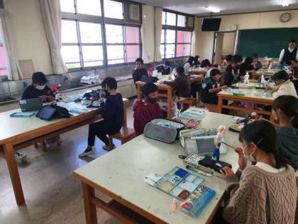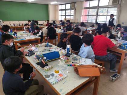 図工科の時間は、将来の自分を想像し、芯材を使って紙粘土で形にしました。