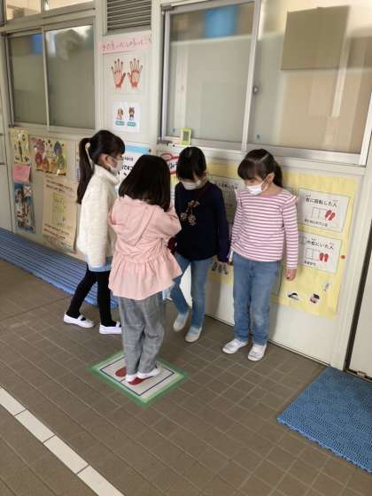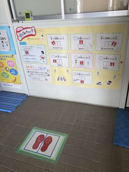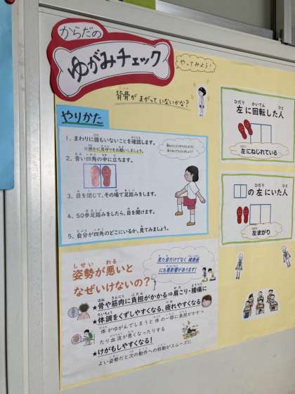 保健室の前にからだのゆがみチェックができる掲示物があります。子どもたちもやっていました。