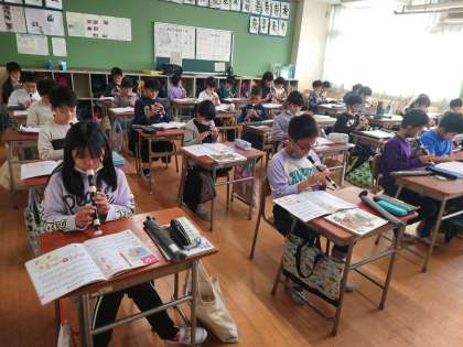 音楽の時間は、「もみじ」を歌ったり、「きらきらぼし」をリコーダーで演奏したりしました。
