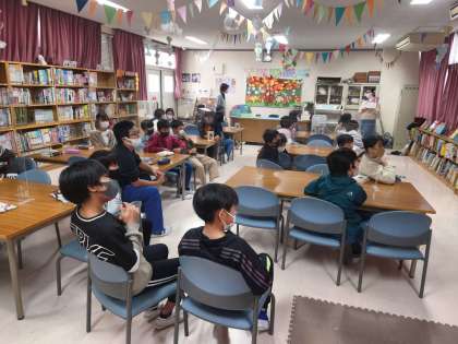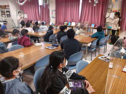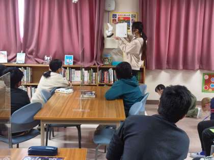 今日は、図書ボランティアの方に来ていただき、5年生・6年生の子どもたちに絵本の読み聞かせをしていただきました。