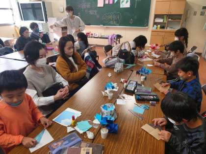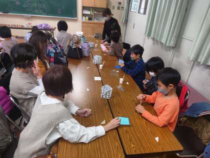 PTA主催の折花教室が開催され、およそ20人程の親子が参加しました。