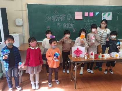 PTA主催の折花教室が開催され、およそ20人程の親子が参加しました。