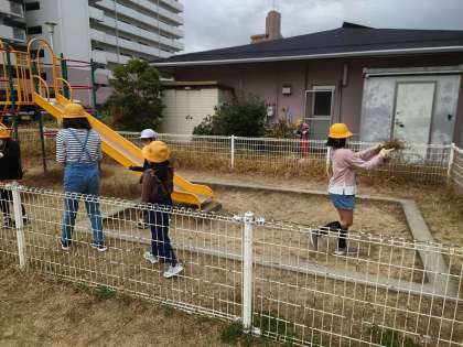 季節柄、落ち葉などがたくさんあり、子どもたちは一生懸命掃除をしていました。