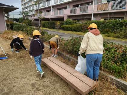 清掃場所は、焼野住宅1号棟前、2号棟と3号棟の間、焼野さくら公園、焼野南公園、焼野公園、学校周辺の6か所。