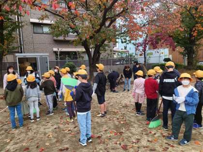 季節柄、落ち葉などがたくさんあり、子どもたちは一生懸命掃除をしていました。