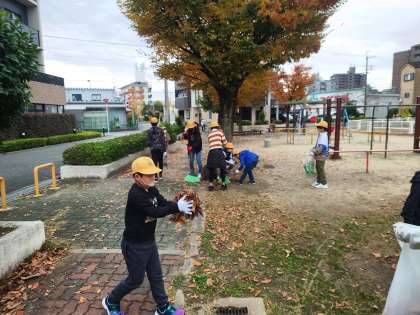 季節柄、落ち葉などがたくさんあり、子どもたちは一生懸命掃除をしていました。