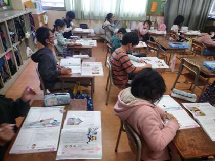 道徳の時間は、教科書の教材文「まどガラスと魚」の学習をしました。