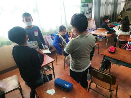 英語活動の時間は、ペアで”Do you like〜?"の表現を使ったやりとりをしました。