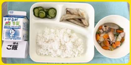 今日の献立は、きびなごてんぷら・あつあげと野菜の煮もの・きゅうりの甘酢づけ・ごはん・牛乳でした。