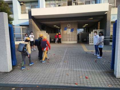 高学年の運営委員の子どもたちは、「おはようございます!」と大きな声を出してがんばっています。