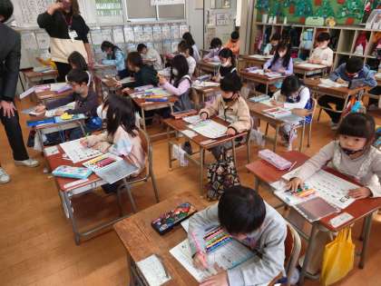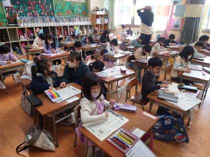 茨田北小学校の栄養教諭の先生に来ていただき、1年生の教室で栄養指導を行いました。