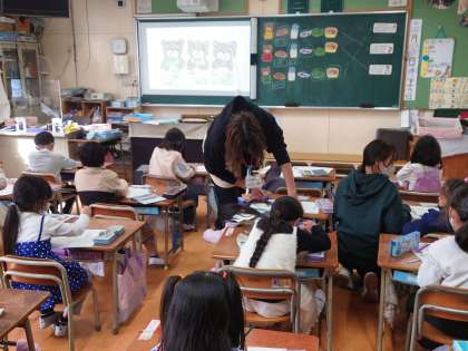 茨田北小学校の栄養教諭の先生に来ていただき、1年生の教室で栄養指導を行いました。