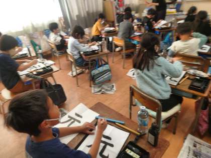 書写の時間は、毛筆で「元」と書きました。