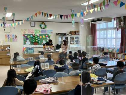 今日は、図書ボランティアの方に来ていただき、1年生の子どもたちに絵本の読み聞かせをしていただきました。