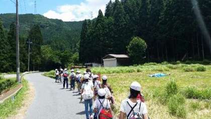 天川村の村役場を出発しました。天気も回復してきました。大自然の中をハイキングします。