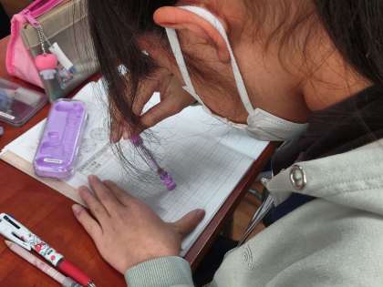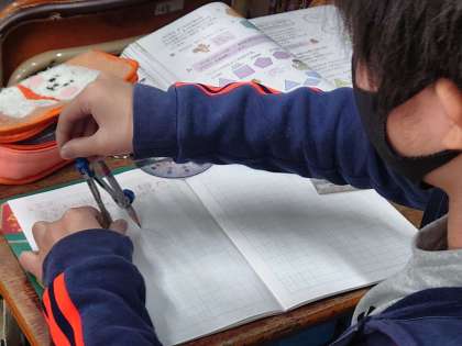 最後に、ノートにコンパスや分度器を使って実際に正多角形を描いていきます。