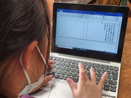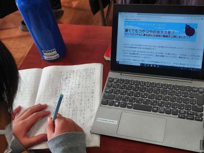 国語科の時間は、自分たちの住む地域のおすすめの料理や特産品を調べてリーフレットを作る活動をしています。