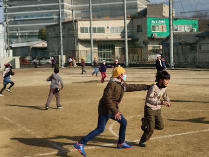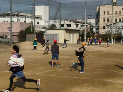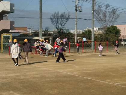 気温が低く寒い日ですが、子どもたちは元気に外遊びをしています。