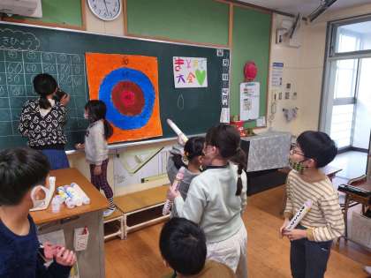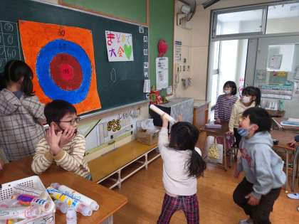 生活科の時間は、廃材を使った手作りおもちゃで遊びました。