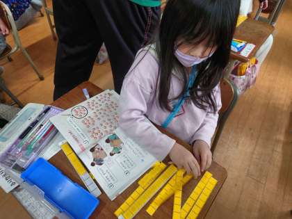 算数科の時間は、数を数字やブロックで表す学習をしました。