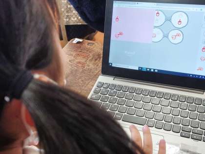 プログラミングアプリ「ビスケット」を使って、アニメーションを作っています。