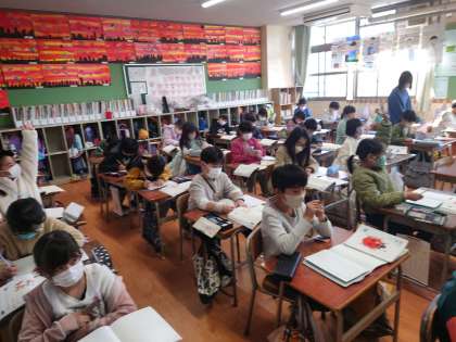 国語科の時間は、生活の中で身の回りの人に助けてもらったことや、してもらってうれしかったことなど、「ありがとう」という気持ちを伝えたい人へ手紙を書く学習をしています。