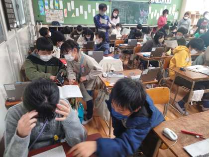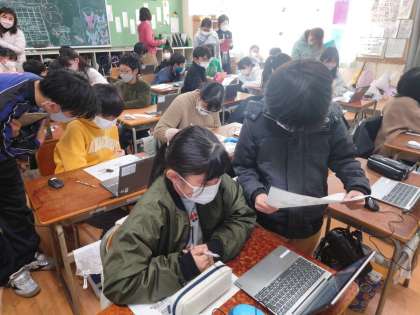 考えたことを子どもたちどうし共有しています。