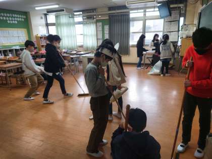 午前中は、各学級で学習をしたり、お楽しみ会をしたり、通知表を渡したり、冬休みの生活について話をしたり、大そうじをしたりしてすごしました。