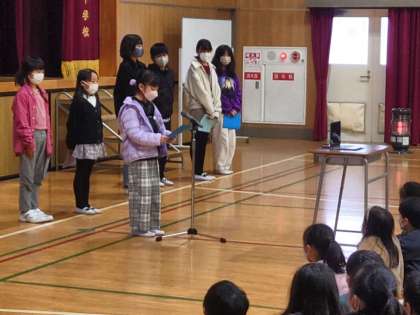 2年生、6年生代表の子どもたちが、「2学期がんばったこと」を発表しました。