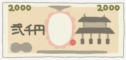 「2000円札」は、2000年(平成12年)に発行されました。あまり普及せず、見かけることは少ないですが、ちゃんと使うことができます。発行中の紙幣のひとつですが、現在、製造はされていません。