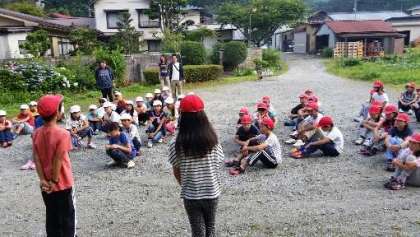 おはようございます。林間学習も三日目の朝です。起床して朝会で眠気覚ましにえびかに体操をしました。