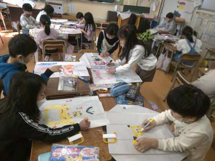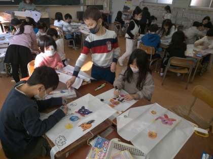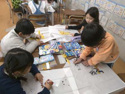 「ぐにゃぐにゃだこ」に思い思いの絵を描いています。