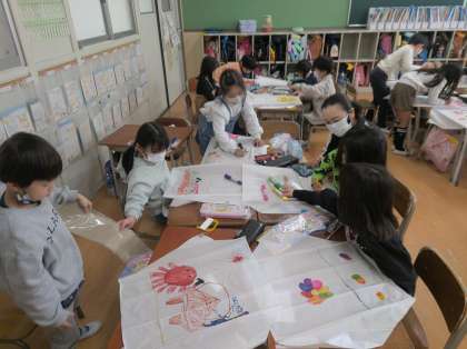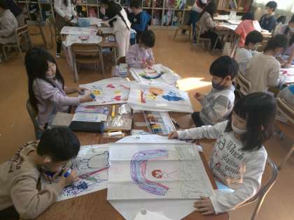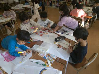 「ぐにゃぐにゃだこ」に思い思いの絵を描いています。