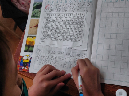 算数科の時間は、1から99までの数が並んでいる表を見て、気付いたことをノートに書きました。