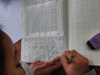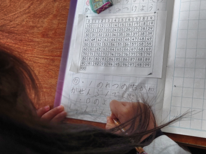 算数科の時間は、1から99までの数が並んでいる表を見て、気付いたことをノートに書きました。