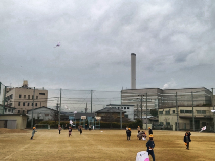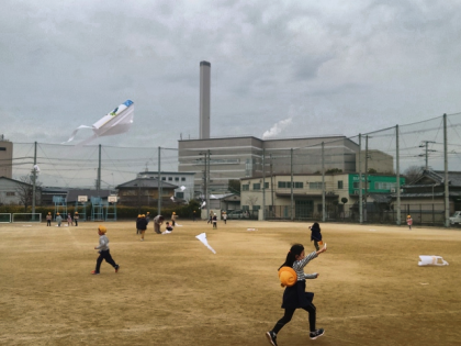 風が弱かったので、子どもたちは一生懸命走ってたこを飛ばしていました。