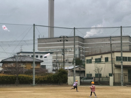 風が弱かったので、子どもたちは一生懸命走ってたこを飛ばしていました。
