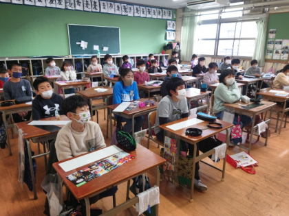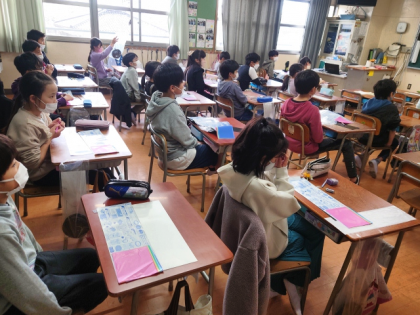 図画工作科の時間は、「光のステンド」の作品の下絵をかきました。