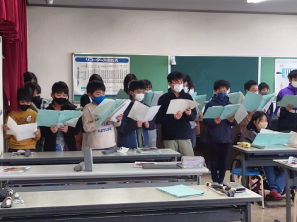音楽の時間は、「すてきな友達」を歌ったり、「風とケーナのロマンス」をリコーダーで演奏したりしました。