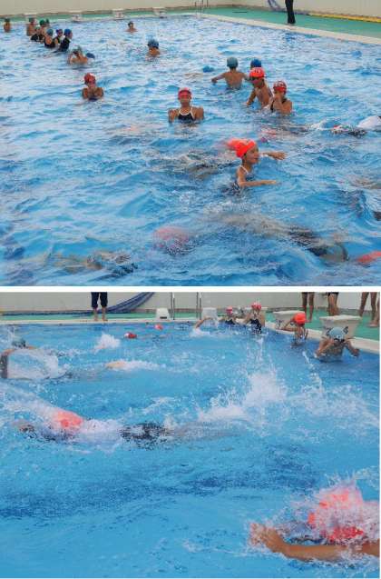 林間学習中はプール開放はお休みでした。今日はひさしぶりのプール開放です。水しぶきをあげて、楽しんで参加していました。