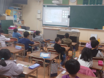 児童集会は、学習室と各教室をオンラインで結んで行いました。