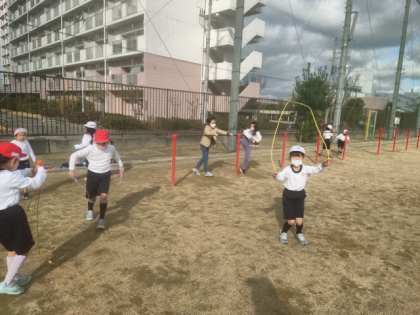 空気は冷たいですが、子どもたちは元気に外遊びしています。