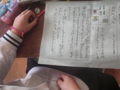 国語科では、家族や友達など、自分の身近な人を紹介する文章を書く学習をしています。