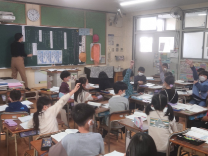 国語科の時間は、教科書の教材文「かさこじぞう」の学習をしています。