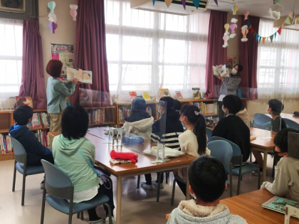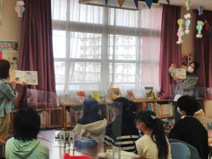 今日は、図書ボランティアの方に来ていただき、5年生の子どもたちに絵本の読み聞かせをしていただきました。