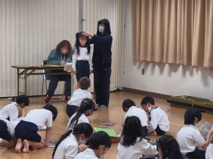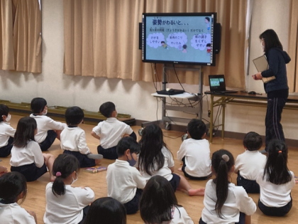 発育測定の前に、養護教諭から「よい姿勢」についての話がありました。